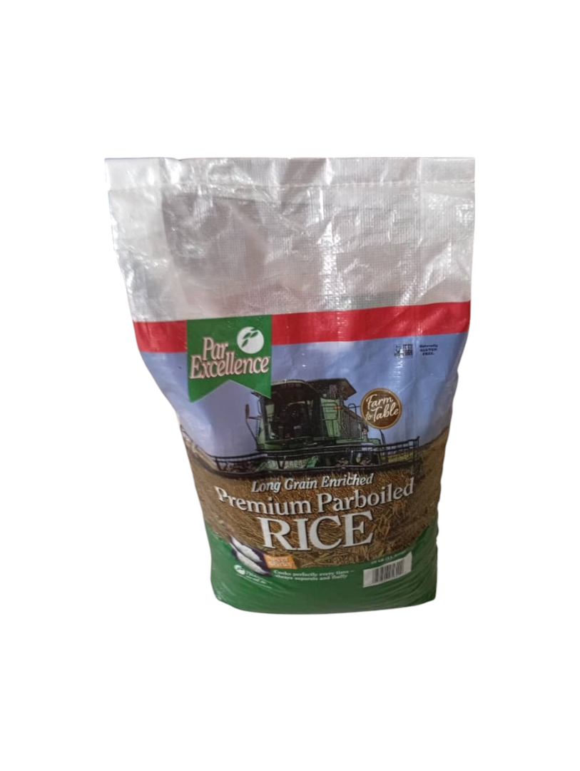 Premium long-grain enriched white parboiled rice with firm, dry texture